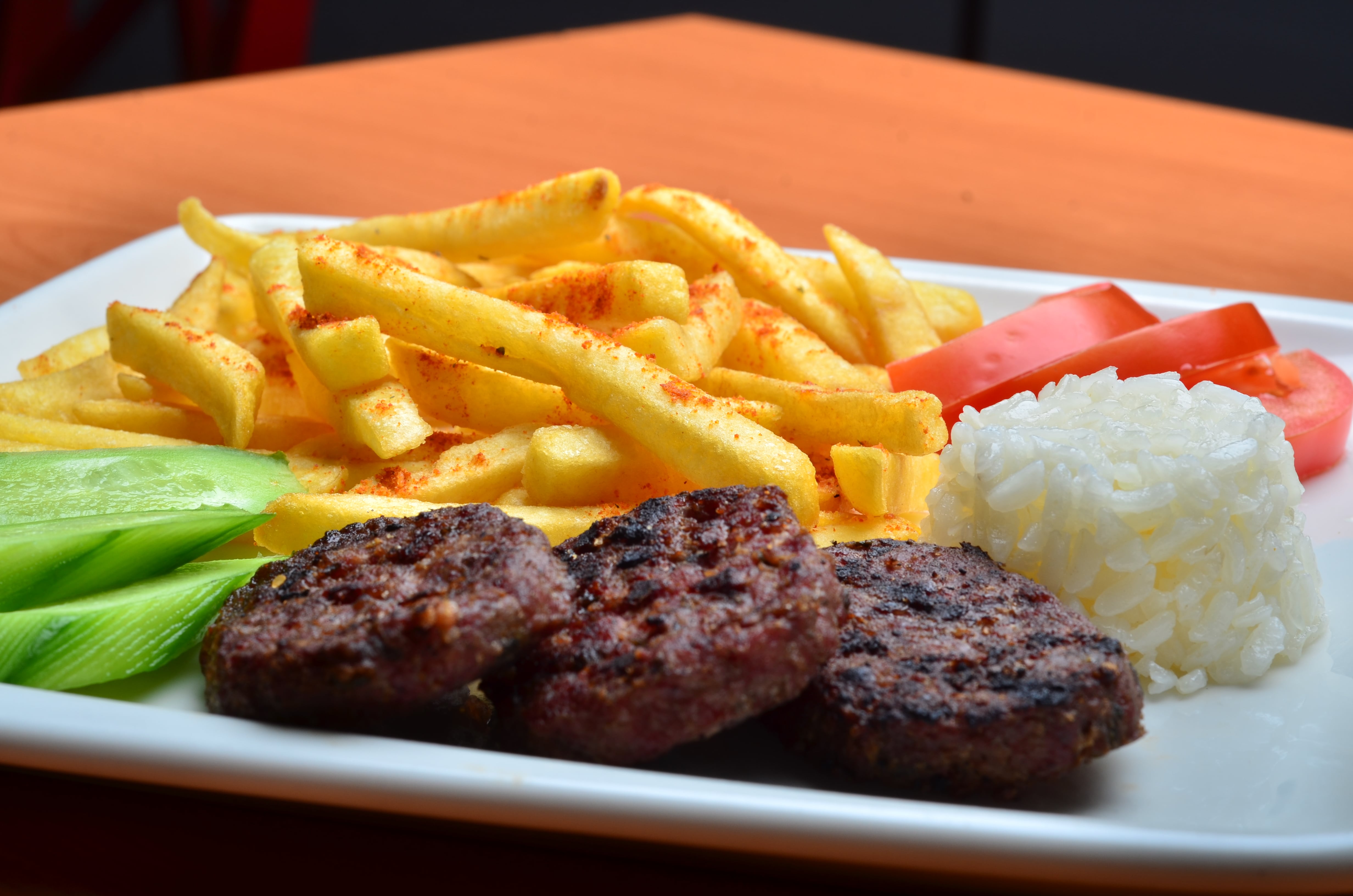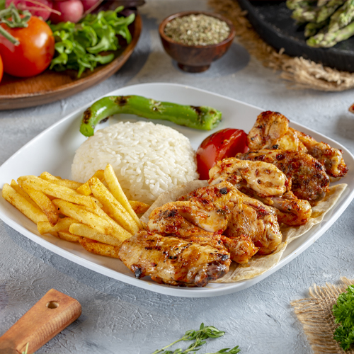 Pilav ve salata ile servis edilir. 5 adet köfte ile servis edilir.